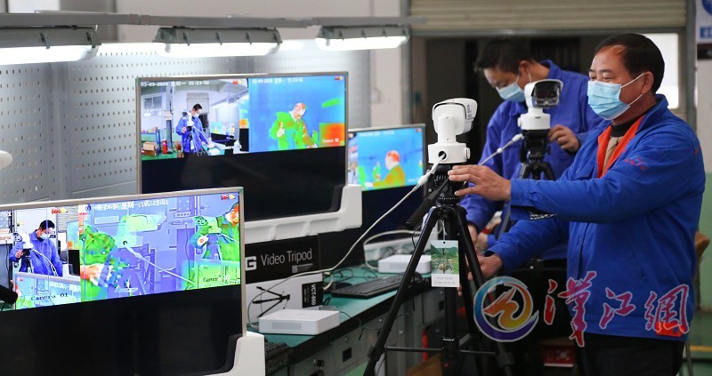 3月9日,在襄陽(yáng)國(guó)鐵機(jī)電股份有限公司,工作人員正在調(diào)試熱成像快速測(cè)溫系統(tǒng)。本公司2月23日成功研發(fā)了熱成像快速測(cè)溫系統(tǒng),該系統(tǒng)可實(shí)現(xiàn)對(duì)進(jìn)出人員體溫檢測(cè)、人臉識(shí)別、實(shí)名制驗(yàn)證和考勤管理,可同時(shí)對(duì)30-50人進(jìn)行體溫快速檢測(cè)、篩查、報(bào)警。在疫情防控期間,本公司一天能夠生產(chǎn)30多臺(tái)設(shè)備,目前用于全市的疫情防控指揮部門(mén)、部分醫(yī)院及復(fù)工復(fù)產(chǎn)的企業(yè),下一步將投入到學(xué)校。