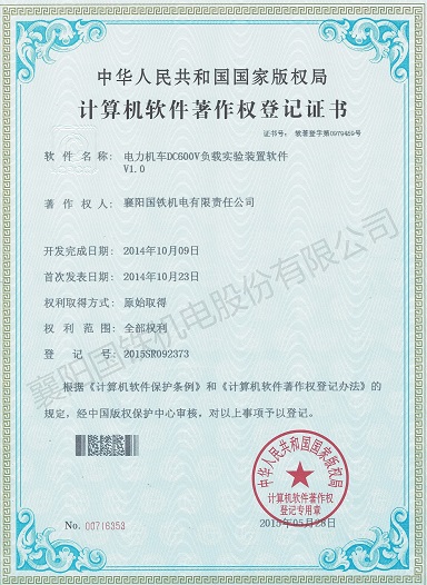 電力機(jī)車DC600V負(fù)載實(shí)驗(yàn)裝置軟件(軟件著作權(quán)證書)